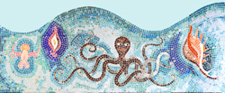 Es wurden 25000 Glassteine verarbeitet, 4500 Goldsteine, Größe des Mosaiks 7,2 m x 1,20 m, Arbeitszeit: 4 Monate